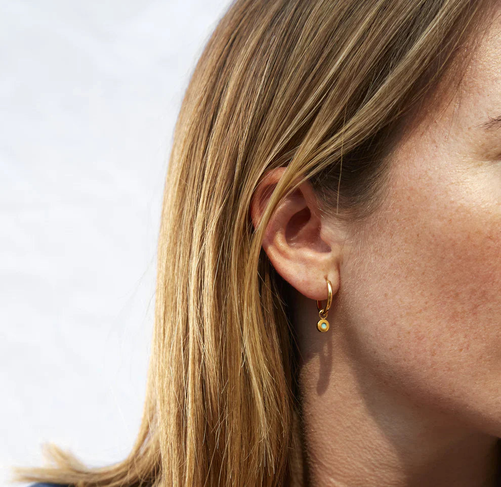 NEW WAVE HOOPS HANGING TURQUOISE CHIP GOLD