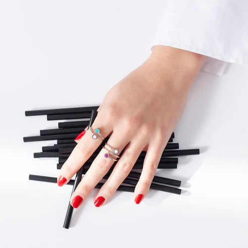 NEW WAVE SILVER TURQUOISE AND WHITE CHIP DOUBLE RING